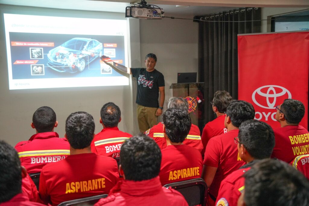 Durante la jornada, el equipo de Toyota se reunió con la Compañía de Bomberos Guillermo Crosby Tizón N.° 78, donde se desarrolló una sesión especializada sobre seguridad en vehículos híbridos. Este taller estuvo centrado en explicar el funcionamiento de los sistemas de alto voltaje, los protocolos de intervención en emergencias y las recomendaciones para una manipulación adecuada ante posibles incidentes.