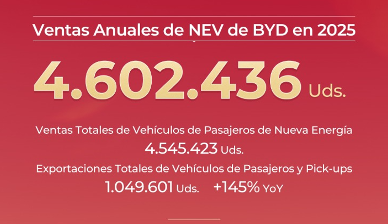 Este desempeño se vio reforzado por los resultados alcanzados al cierre del año, cuando la compañía se posicionó como el mayor fabricante de vehículos eléctricos del mundo, tras registrar más de 2,26 millones de unidades entregadas a nivel global, superando a Tesla.