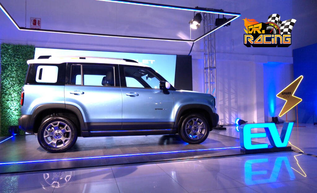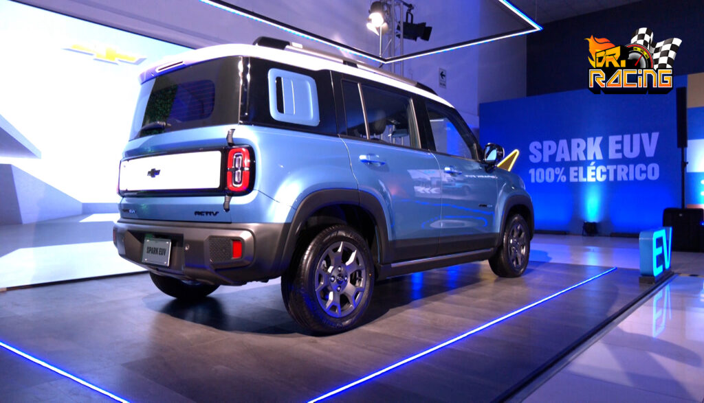 El Spark EUV adopta una estética de SUV compacto, con un diseño moderno y robusto que refuerza su carácter urbano. Entre sus elementos exteriores destacan luces delanteras y traseras LED, techo flotante, ruedas de 16 pulgadas y el emblema Black Bowtie característico de la marca.