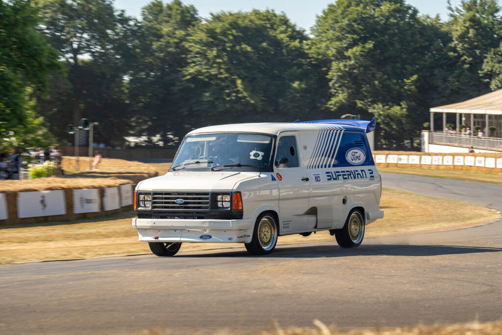 La primera SuperVan fue creada en 1971 como vehículo de demostración. Basada en la primera generación de Transit, estaba equipada con el mismo motor central V8 del Ford GT40, que conquistó victorias legendarias en Le Mans y alcanzaba más de 240 km/h. La SuperVan 2, presentada en 1983, incorporó un motor Cosworth V8 de más de 590 CV del modelo de carreras C100 y llegaba a 280 km/h. En 1994 llegó la SuperVan 3, con un motor Cosworth de 650 CV, similar al de los autos de F1 de la época.