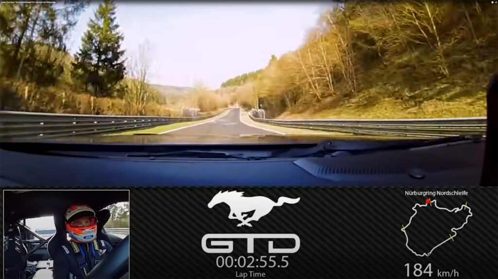 “Reducir 5,5 segundos en una vuelta en Nürburgring es un gran logro. En términos prácticos, después de una vuelta en el circuito de 20,7 km, esa ventaja significa estar más de 1.290 m por delante. Y el hecho de que el equipo haya logrado esto en nuestro segundo intento con buen tiempo va más allá de un logro incremental”, indicó Greg Goodall, ingeniero jefe del programa Mustang GTD.