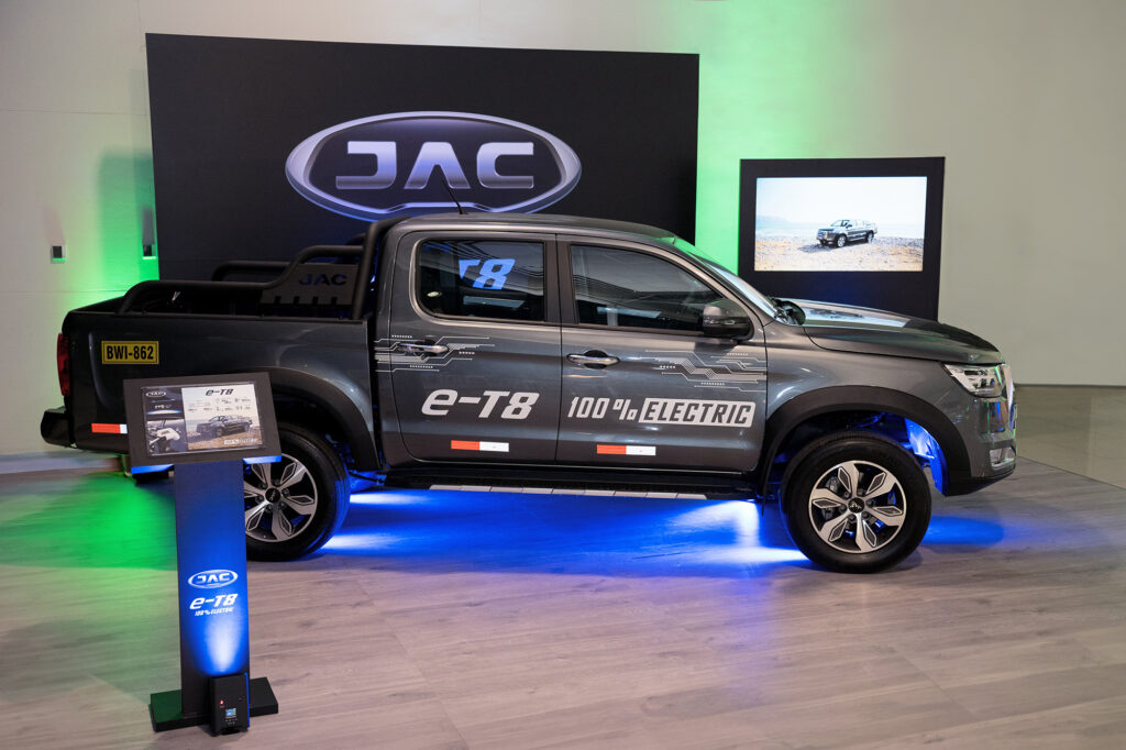 La presentación de JAC marca un hito en el mercado automotriz peruano por la introducción exclusiva del revolucionario JAC e-T8, una pick up 100% eléctrica que combina un rendimiento excepcional, diseño robusto y tecnologías avanzadas con cero emisiones. El vehículo se une a la nueva línea 100% Electric, que incluyen SUV, Citycar, Cargo panel y camiones dentro de su amplio portafolio.