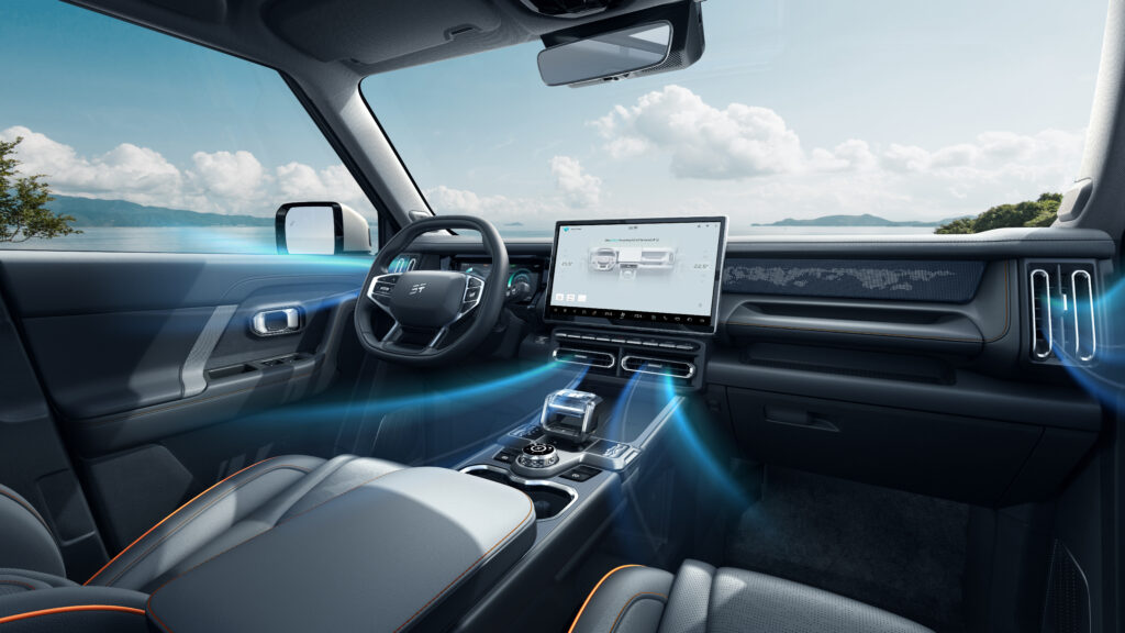 En cuanto a tecnología híbrida, el T1 i-DM demuestra claras ventajas. Está equipado con un motor híbrido especialmente desarrollado que alcanza una eficiencia térmica del 44,5 %, combinado con una transmisión híbrida dedicada. El consumo de combustible se sitúa en tan solo 1,08 L/100 km y, incluso en modo de batería descargada, se mantiene en 5,89 L/100 km. El sistema permite la conducción en modo totalmente eléctrico en aproximadamente el 90 % de las condiciones de uso diario, ofreciendo una experiencia de conducción silenciosa y suave, adecuada tanto para los desplazamientos urbanos como para viajes interurbanos de mayor distancia, que constituyen escenarios clave de uso en la región.