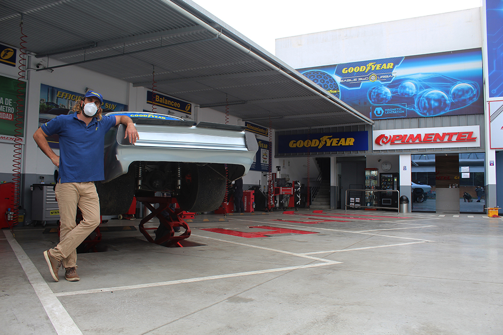 El reconocido piloto nacional y auspiciado por Goodyear, Juan Diego Gonzáles-Vigil, visitó el nuevo local de Pimentel, distribuidor de la marca Goodyear, ubicado en la Avenida Primavera N°1255, en el distrito de Santiago de Surco.