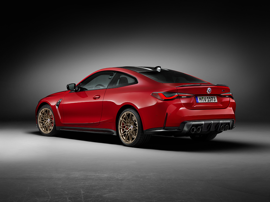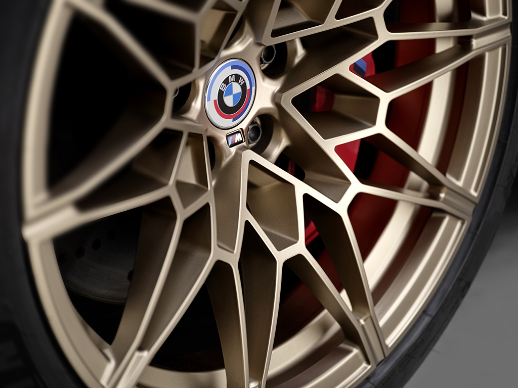 En Europa y otras regiones de ventas seleccionadas, BMW M GmbH ofrece una edición exclusiva del BMW M4 Coupé para conmemorar su aniversario. La edición de los 50 Años de BMW M de dos puertas viene en los colores exteriores Carbon Black, Macao Blue, Brands Hatch Grey, Imola Red y San Marino Blue. Su aspecto expresivo se ve reforzado por rines forjados M de 19 pulgadas en el eje delantero y llantas de 20 pulgadas en el eje trasero con un diseño de radios dobles, que se ofrecen por primera vez en los colores Orbit Grey Matt y Gold Bronze matt. .