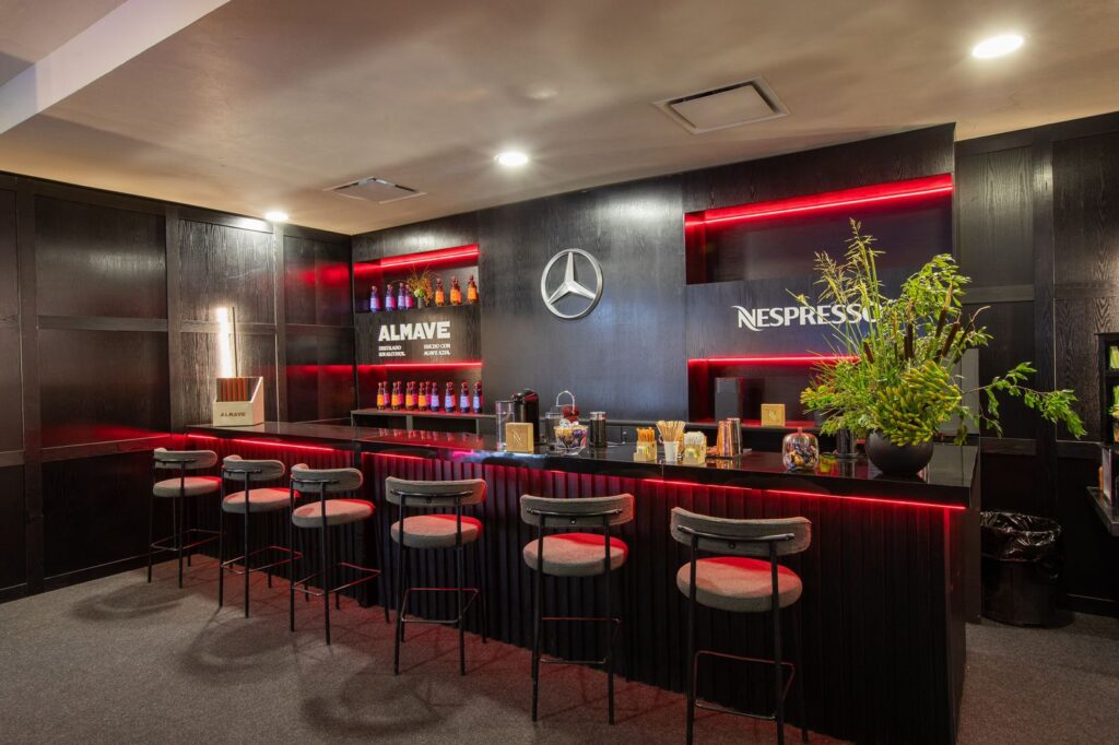 Ser parte de la Fórmula 1 Experience y vívelo en primera persona: Como parte de esta experiencia única, los clientes también son invitados a un spot exclusivo de Mercedes-Benz, diseñado para ofrecerles un lugar cómodo y elegante donde relajarse entre las emocionantes carreras. Este espacio está decorado con el sello distintivo de la marca, creando un ambiente que refleja la sofisticación y la innovación de Mercedes-Benz.
