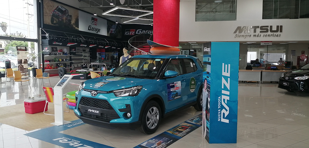 Recientemente Toyota del Perú, realizó su primer lanzamiento del año presentando a su nueva Raize, a través de sus redes sociales. Mitsui, en concordancia con este lanzamiento colocó este nuevo modelo en exhibición en todos sus locales a nivel nacional, hasta el día de hoy.