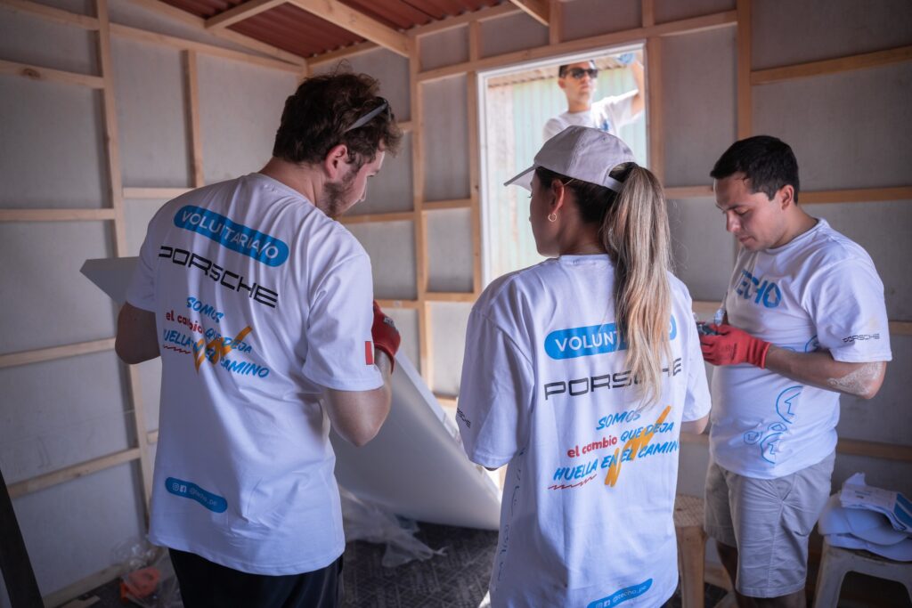 Alrededor de 40 voluntarios del Grupo Euromotors –representante oficial de Porsche en el Perú– y miembros activos de TECHO trabajaron de la mano en la construcción de viviendas, con el objetivo de brindar a dos familias en situación de vulnerabilidad la oportunidad de acceder a un espacio más seguro, digno y saludable.
